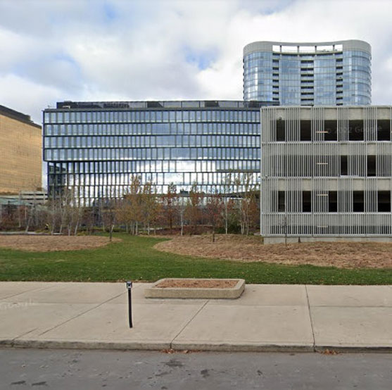 380 E Washington, Cummins green space and parking garage.