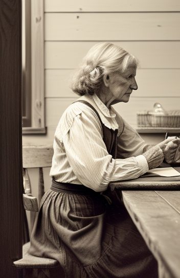 Elderly woman writing letter