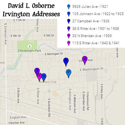 My great grandfather, David Louis Osborne, lived at over 20 addresses around Indianapolis between 1876 and 1942. I thought it would be interesting to see all the old buildings and homes where he lived in my hometown of Indianapolis.