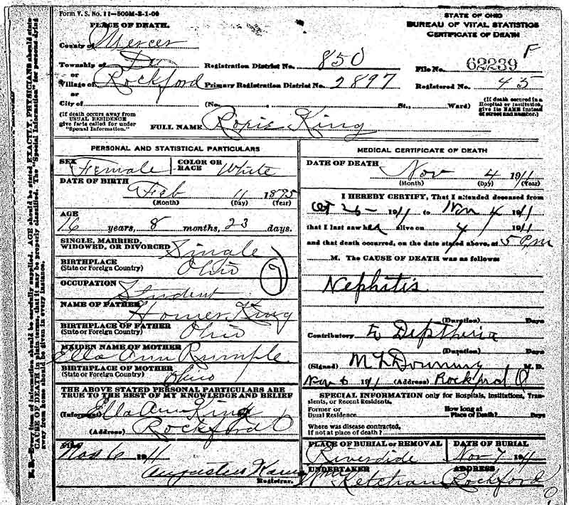 Roxie King Death Certificate