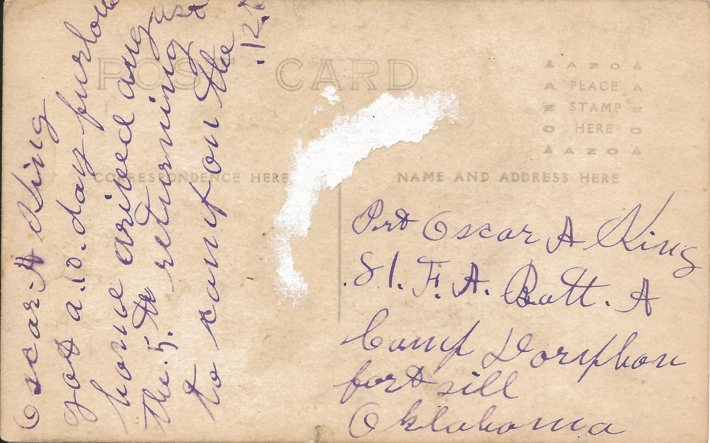 Oscar Postcard 1918 Back